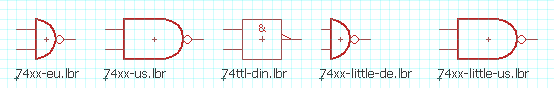 Die Bibliotheken 74xx-eu.lbr; 74xx-little-de.lbr; 74ttl-din.lbr und 74xx-us.lbr; 74xx-little-us.lbr unterscheiden sich in den Symbolen.