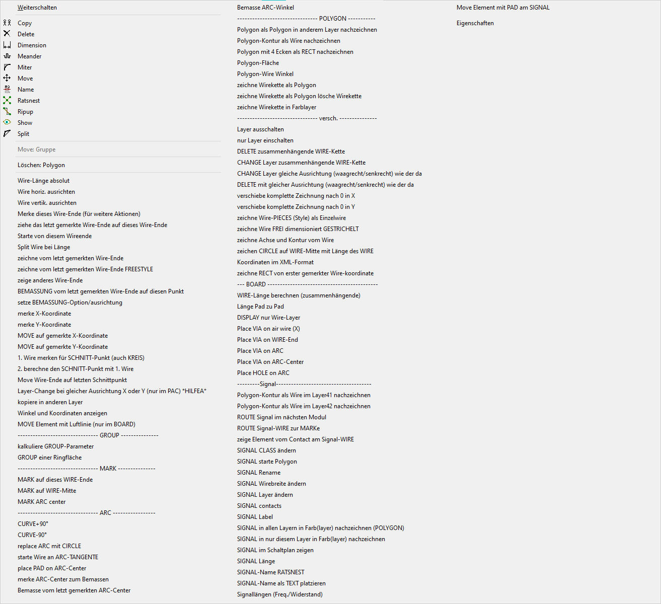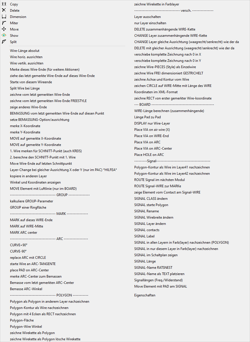 Wire allgemein, entweder Plain oder ein Polygon-Wire. Hier auch ein paar Konstruktions-Funktionen. Auch ARC gehört zum WIRE, er besitzt als zusätzliche Eigenschaft eine Krümmung. |