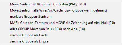 Da manche Anwender bei der Definition/Anlegen von Packages nicht auf den Origin achten, kann man mit diesen Möglochkeiten dafür sorgen, dass der Origin (Nullpunk) im Zentrum des Package liegt. Ein Nullpunkt außerhalb des Zentrum des Package mach beim Rotieren während dem Platzieren im Board Probleme. Je nachdem wie weit der Origin ausserhalb des Package ist, kann es vorkommen, dass man das Package (Element) nicht zu fassen bekommt, oder dass wåhren dem Drehen das Package verschwindet. Soll heißen, ist in das Arbeitsfenster entsprechend gezoomt, und dreht man das Package jetzt, verschwindet es im nicht sichtbaren Bereich des Arbeitsfenster. Packages die so Angelegt sind, machen das Layouten extrem schwer.