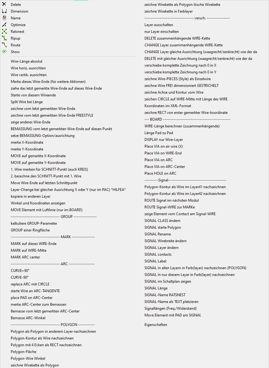 Wire allgemein, entweder Plain oder ein Signal-Polygon. Hier auch ein paar Konstruktions-Funktionen. Auch ARC gehört zum WIRE_Objekt, er besitzt als zusätzliche Eigenschaft eine Krümmung. |
