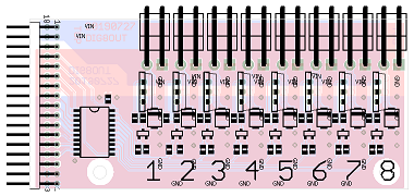 Das Layout meines ARDUINO-UNO mit PORT-Erweiterung und Steckmodule für DAC und 8-fach Schaltausgang.