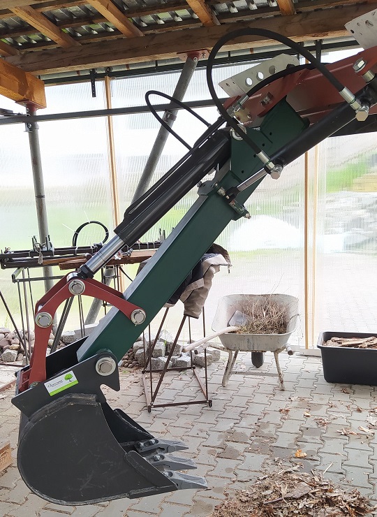 - Meinen selbst konstruierten Baggerausleger* (mit gekauften Baggerlöffel)
