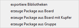 Damit kann eine komplettes Layout oder eine markierte Gruppe als Package angelegt werden, um für eine Dokumentation eine Baugruppe zu erstellen. Nicht benötigte Zeichenelement können dann noch im Package-Editor entfernt oder neue Zeichenelemente hinzugefügt werden.
