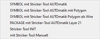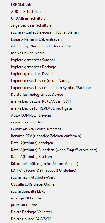 Textbutton-Menü enthält. Bei jedem Wechsel zwischen LBR- SYM- PAC- und DEV-Editor bedeutet das, dass ein Editorfenster neu geöffnet und wie oben beschrieben die eagle.scr ausgeführt wird. Gelegentlich kann es vorkommen, dass das Textbutton-Menü nicht zum Editor-Fenster passt. Hier läuft dann bei der Ausführung des SCRIPT etwas schief. Wann und warum konnte ich bis jetzt nicht eruieren. Sollte es mal der Fall sein, dass das Textbutton-Menü nicht zum geöffneten Editorfenster passt, dann einfach diesen Button anklicken und das Textbutton-Menü wird aktualisiert. Das klappt immer, weil einfach die eagle.scr aufgerufen wird. ;-)