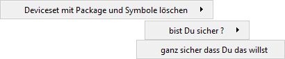 Eine Möglichkeit aus einer bestehenden Bibliothek nicht benötigte Bauteile komplett zu löschen um die Bibliothek zu verkleinern. Auch um Speicherplatz zu sparen. Mit doppelter Sicherheitsabfrage. Damit niemand behauptet das war ich nicht. ;-)