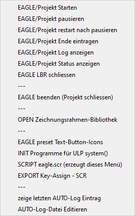 Textbutton-Menü enthält. Bei jedem Wechsel zwischen LBR- SYM- PAC- und DEV-Editor bedeutet das, dass ein Editorfenster neu geöffnet und wie oben beschrieben die eagle.scr ausgeführt wird.