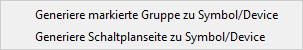 Damit kann eine komplette Seite oder eine markierte Gruppe als Symbol und Device angelegt werden, um für einen Übersichtsplan eine Baugruppe zu erstellen. Nicht benötigte Zeichenelement können dann noch im Symbol-Editor entfernt oder neue Zeichenelemente hinzugefügt werden.